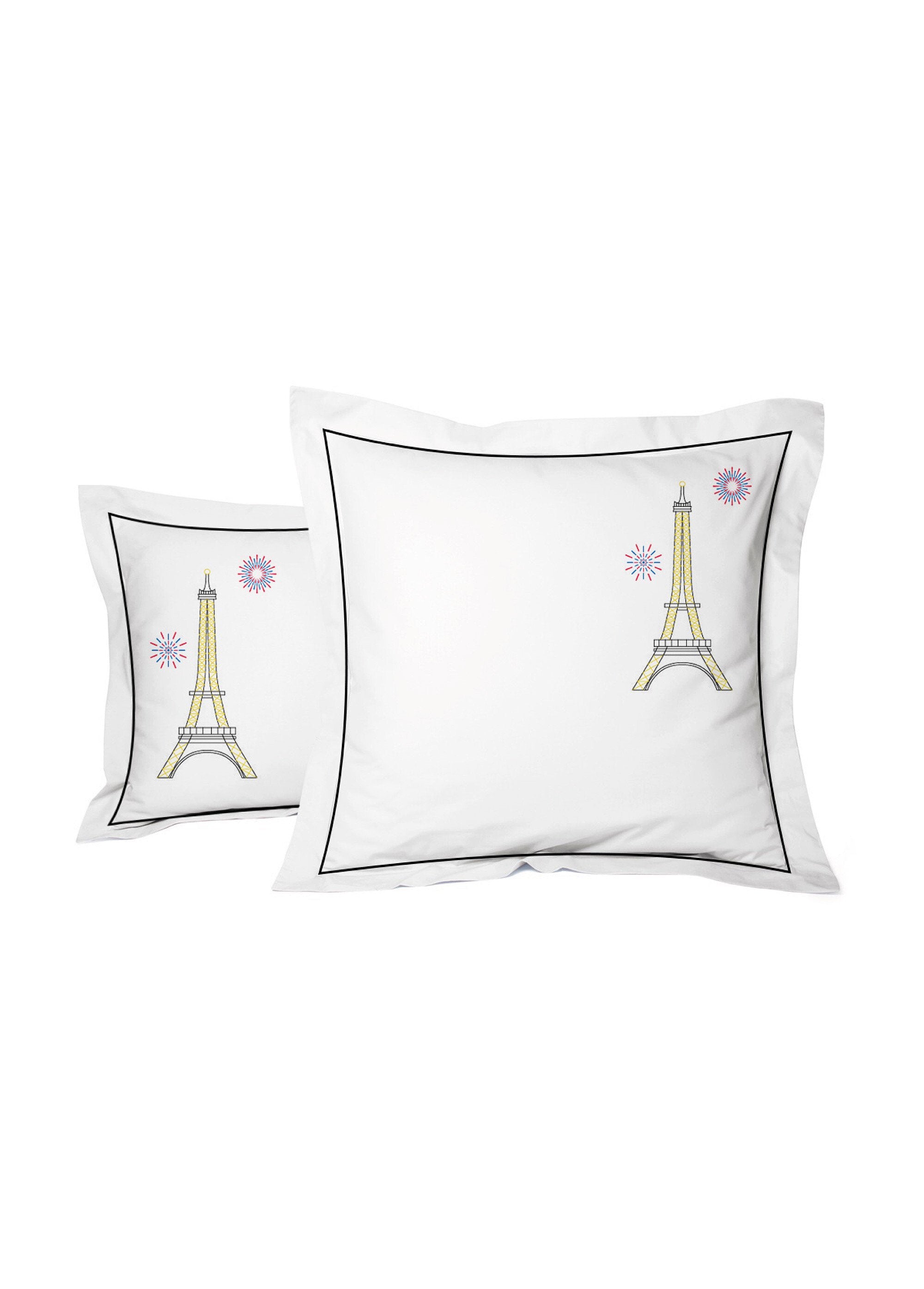 Let yourself be captivated by the beauty of the French capital every night as you drift off to sleep surrounded by the magic of the City of Lights with our Paris bedding set. This Tradition des Vosges® bedding set is crafted from 80-thread-count cotton percale and embroidered with stunning designs depicting Paris's iconic landmarks. Admire the breathtaking details of the Sacré-Coeur, the Moulin Rouge, the Arc de Triomphe, and Notre-Dame, all overlooked by the majestic Eiffel Tower and its colorful fireworks.